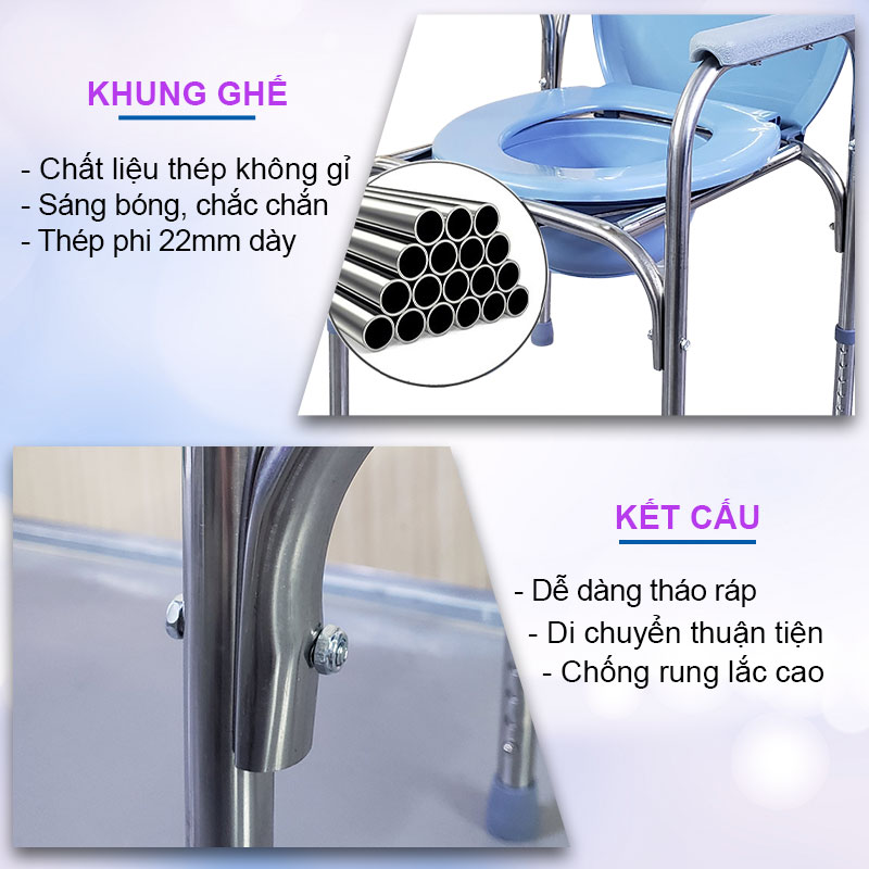 Ghế bô vệ sinh GB-250 chất liệu Inox với khả năng chống gỉ sét, không sợ nước nên chúng ta hàn toàn có thể sử dụng ghế bô vệ sinh để làm ghế tắm.