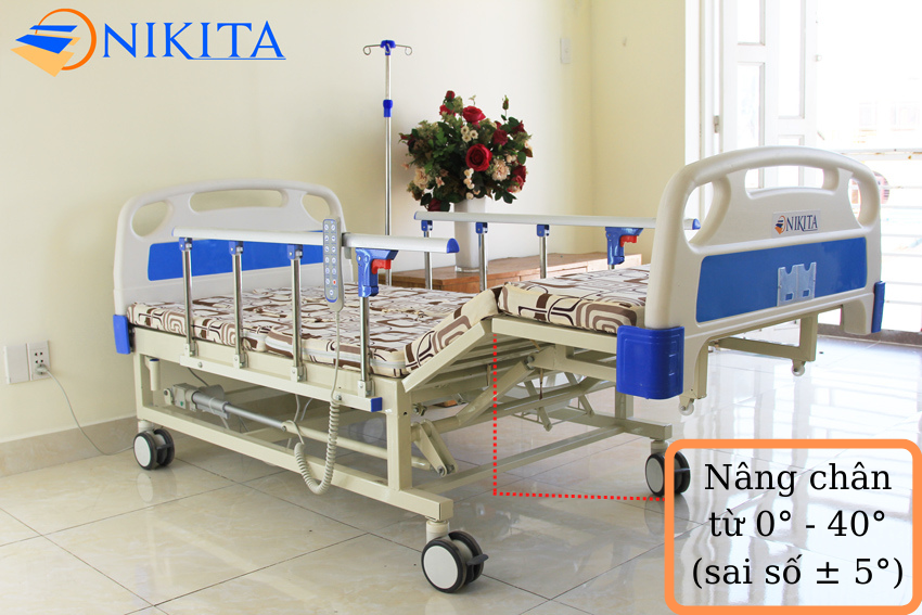 • Nâng hạ chân: Giường bệnh NKT-DCN16 cho phép người bệnh nâng cao chân từ 0° – 40° hoặc hạ chân với góc 0° – 45°, kết hợp với tư thế nâng cao đầu tạo thành tư thế ngồi thoải mái như ngồi ghế sofa. Tính năng này rất quan trọng cho người bệnh và người chăm sóc trong quá trình điều trị.