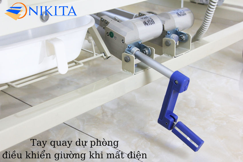 • Giường bệnh chạy hoàn toàn bằng hệ thống điện có thể nâng đầu, nâng chân, nâng nửa thân với nhiều góc độ khác nhau. Đặc biệt, khi mất điện giường có thể thay đổi từ chức năng điều khiển điện sang chức năng điều khiển bằng tay quay phụ đi kèm.