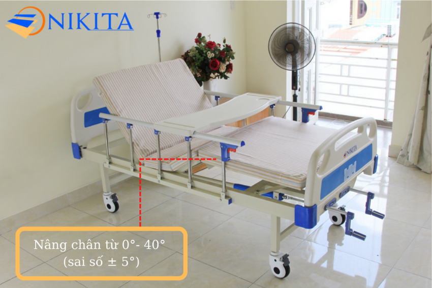 Giường bệnh NKT-DCN02 thiết kế 2 tay quay tương ứng 2 tính năng quan trọng giúp chăm sóc người bệnh điều trị và phục hồi bệnh.