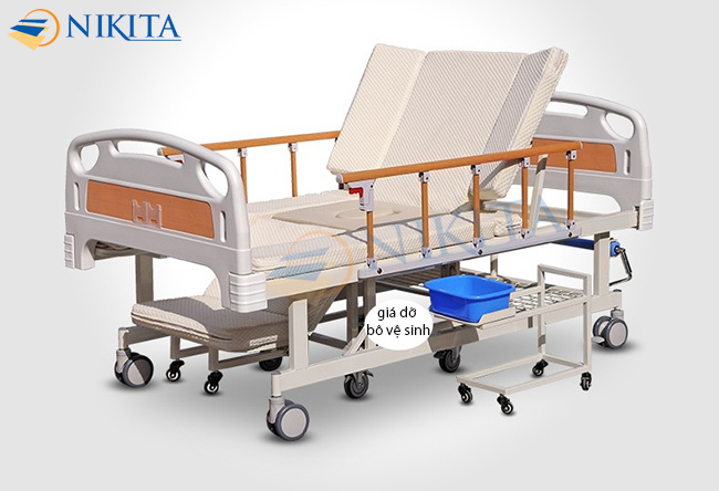 – Đặc biệt bô vệ sinh của giường được đặt trên một giá đỡ có bánh xe, tiện di chuyển, sử dụng và chăm sóc người bệnh.