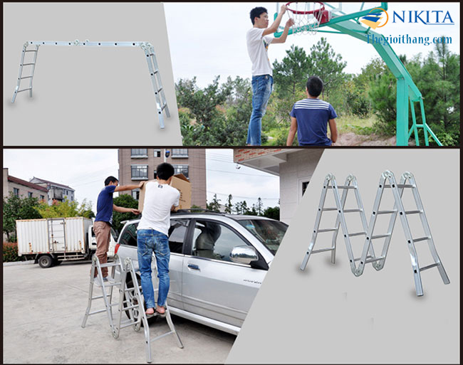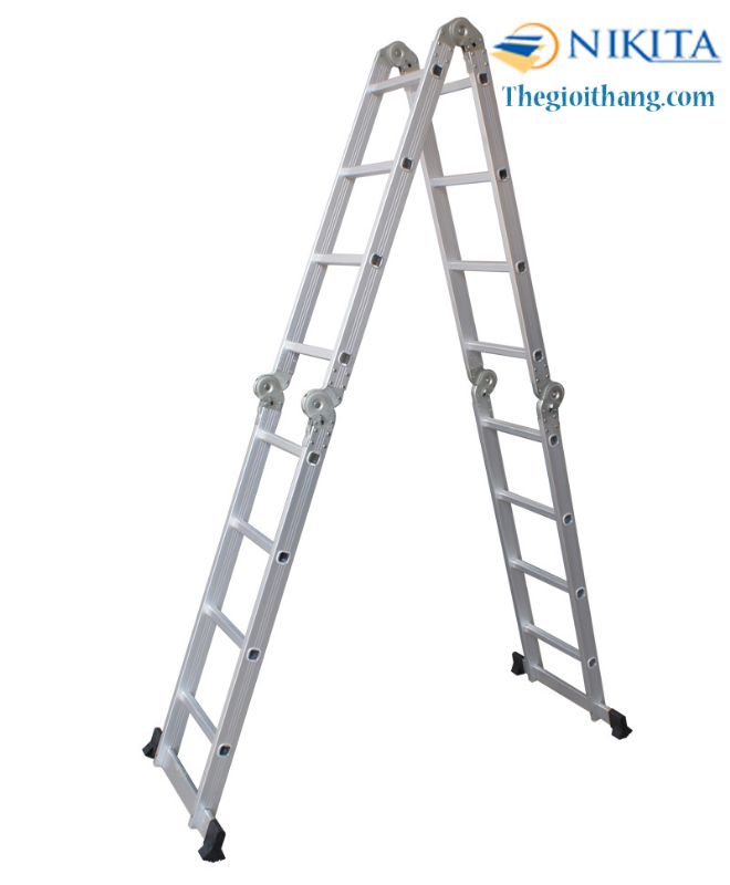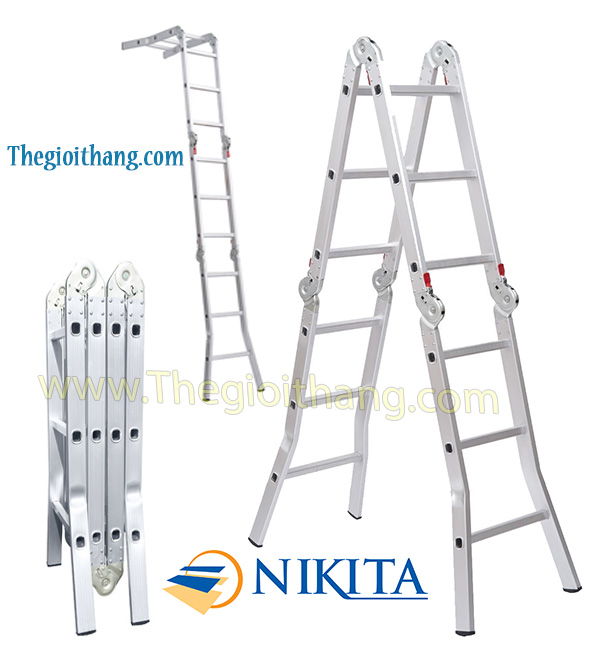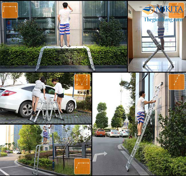 Thang gấp 4 khúc NIKITA có thể sử dụng hình chữ A, chữ K, chữ I, chữ L, chữ M… tùy thuộc vào yêu cầu sử dụng