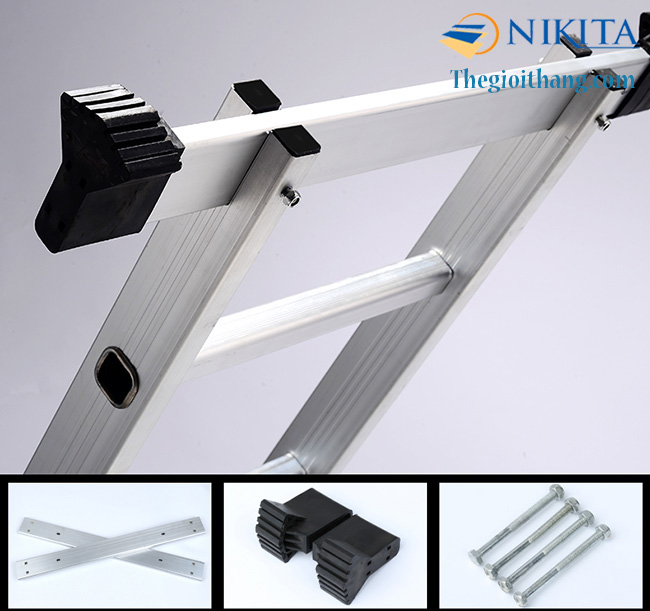 · Thang nhôm gấp 4 khúc NIKITA được tán 3 lần với công nghê đột dập tiên tiến nhất rất chắc chắn, tải trọng lớn, an toàn cao nhất