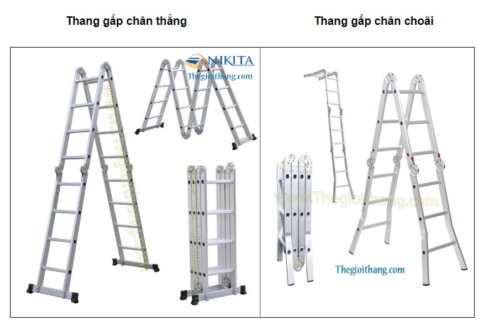 Thang gấp chân thẳng: thân thang thẳng từ trên xuống dưới, có thêm 1 chân phụ khiến thang chắc khỏe hơn.