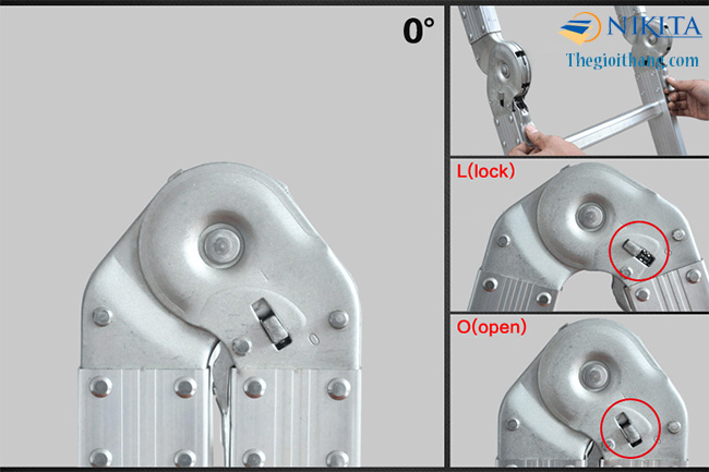 · Khóa thang: Thang nhôm gấp 4 khúc sử dụng khóa tự động khi mở đến cữ khóa tự động sập lại