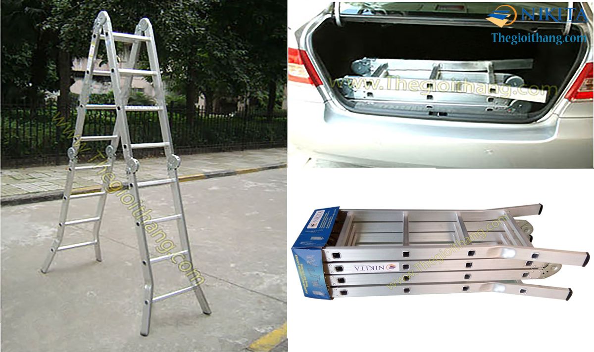 Thang gấp 4 khúc Nikita có thể xếp gọn để vào cốp xe tiện cho việc vận chuyển