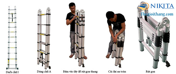 •Thang nhôm rút đa năng Nikita sử dụng thông minh chữ A và chữ I bằng những thao tác rất đơn giản.
