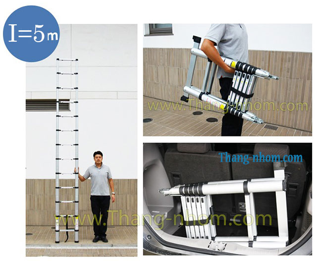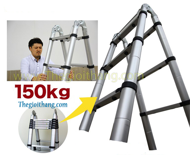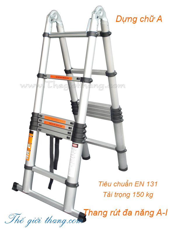 A – I 50: gấp chữ A cao 2m5, duỗi thẳng chữ I cao 5m, rút gọn 0,95m, trọng lượng 18kg (8 bậc)
