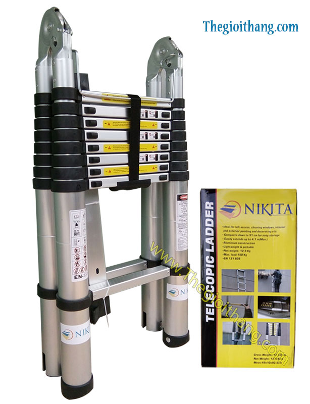 • Thang nhôm rút đa năng Nikita với thiết kế nhỏ gọn, linh hoạt trong sử dụng, có độ bền chắc chắn, tải trọng cao, an toàn sử dụng cả khi duỗi thẳng. Thích hợp trong thi công ở những vị trí cao, hẹp hoặc dùng dễ dàng khi cần kê thang ở bậc tam cấp.