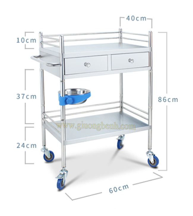 Khung inox không gỉ, 3 tầng, 2 ngăn kéo.